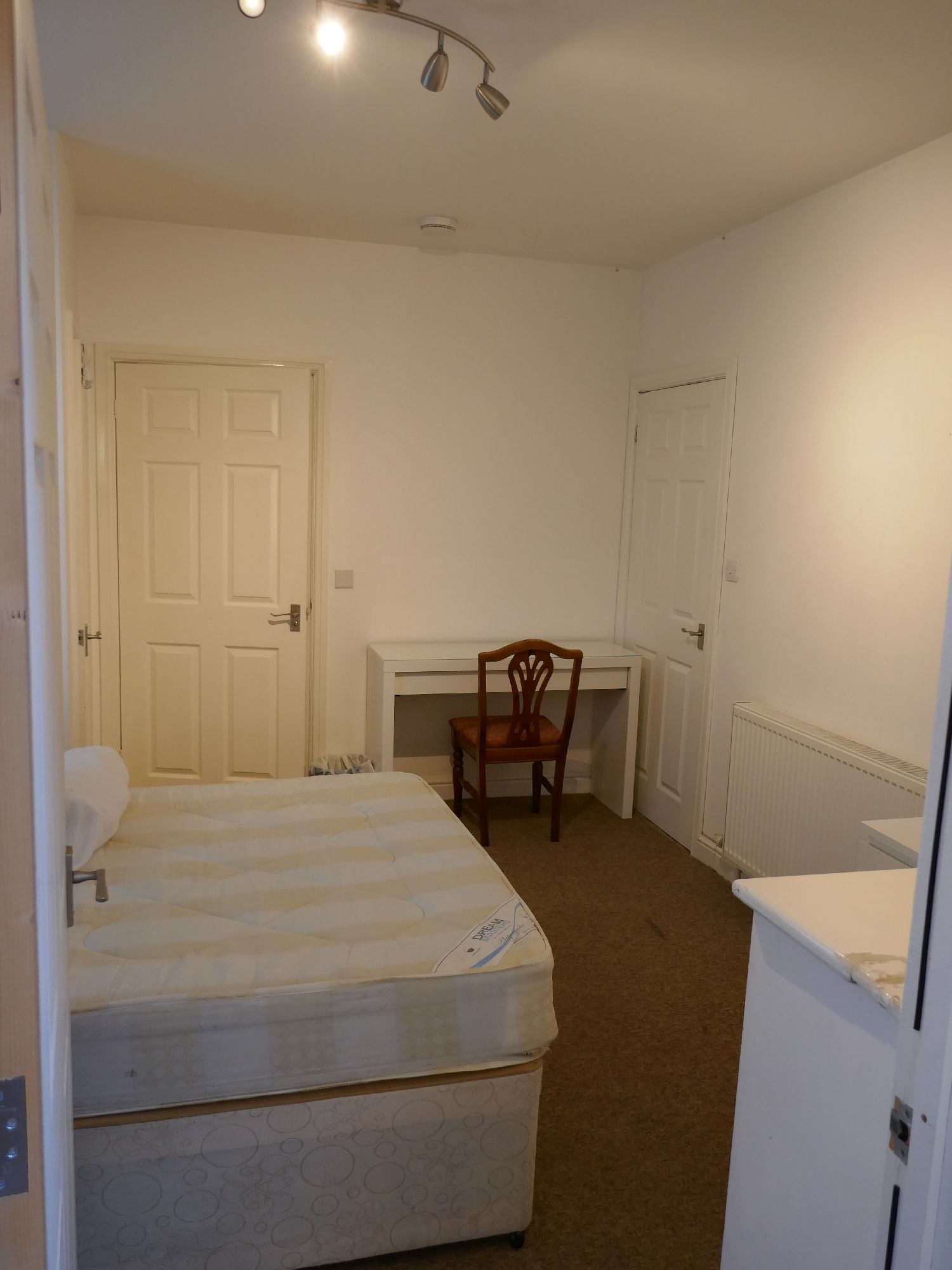 The property features three fully furnished double bedrooms, each equipped with a bed, wardrobe, desk, and chair, providing both comfort and functionality.