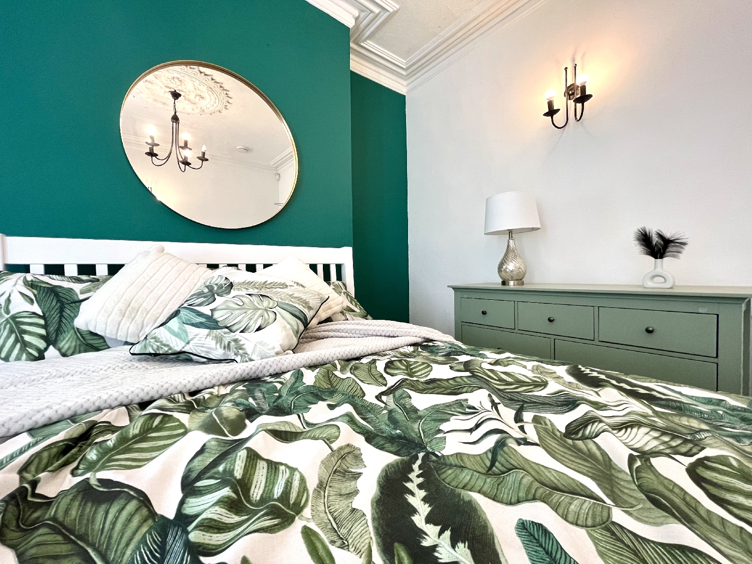 The ground floor bedroom has had all new flooring with all new furniture including a large double bed, new mattress, desk, comfy desk chair, stylish green chest of drawers and wardrobe to match.