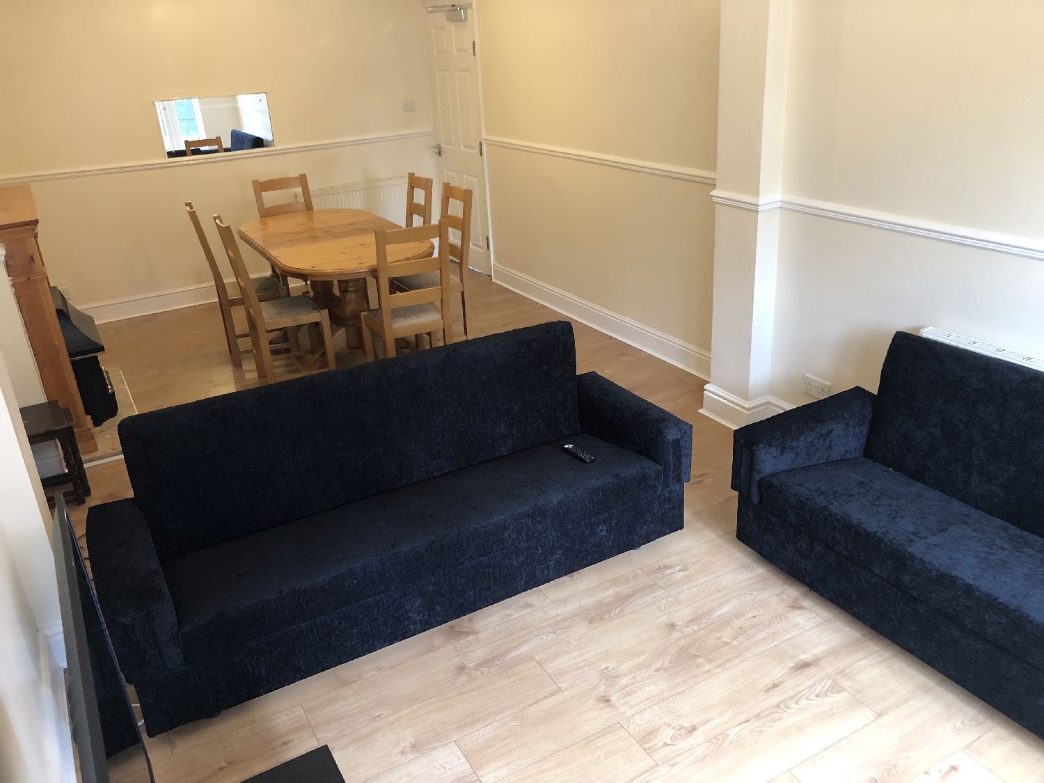 A spacious and sociable six-bedroom student house on Arnesby Road, ideally located in the heart of Lenton. The property offers a large open-plan lounge and dining area with two comfortable leather sofas, a six-seater dining table, and patio doors leading onto a generous rear garden—perfect for relaxing or hosting friends.