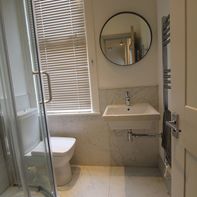 The ground floor features a modern kitchen, a shower room, and one double bedroom. Upstairs, there are four further double bedrooms and a main bathroom, with the sixth double bedroom situated on the top floor.