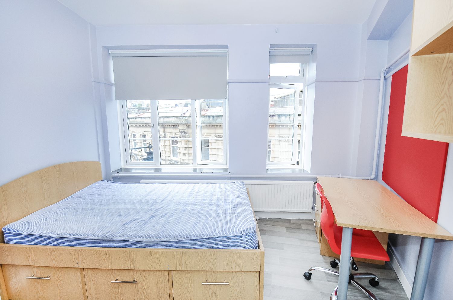 The communal kitchens and shower rooms are shared between 4-5 others at most and are CLEANED BI-WEEKLY. Bedrooms are fully furnished with a bed, wardrobe, desk, chair, shelves and a notice board. The kitchen has a microwave, oven, hob, plenty of fridge freezer space and a table and chairs.