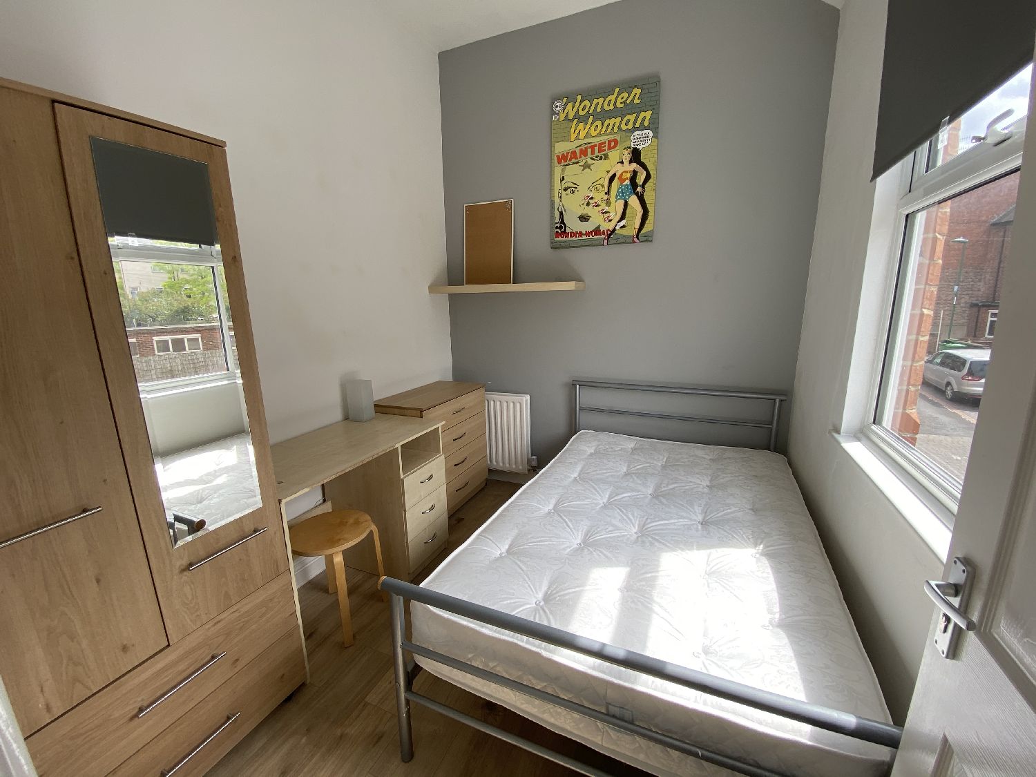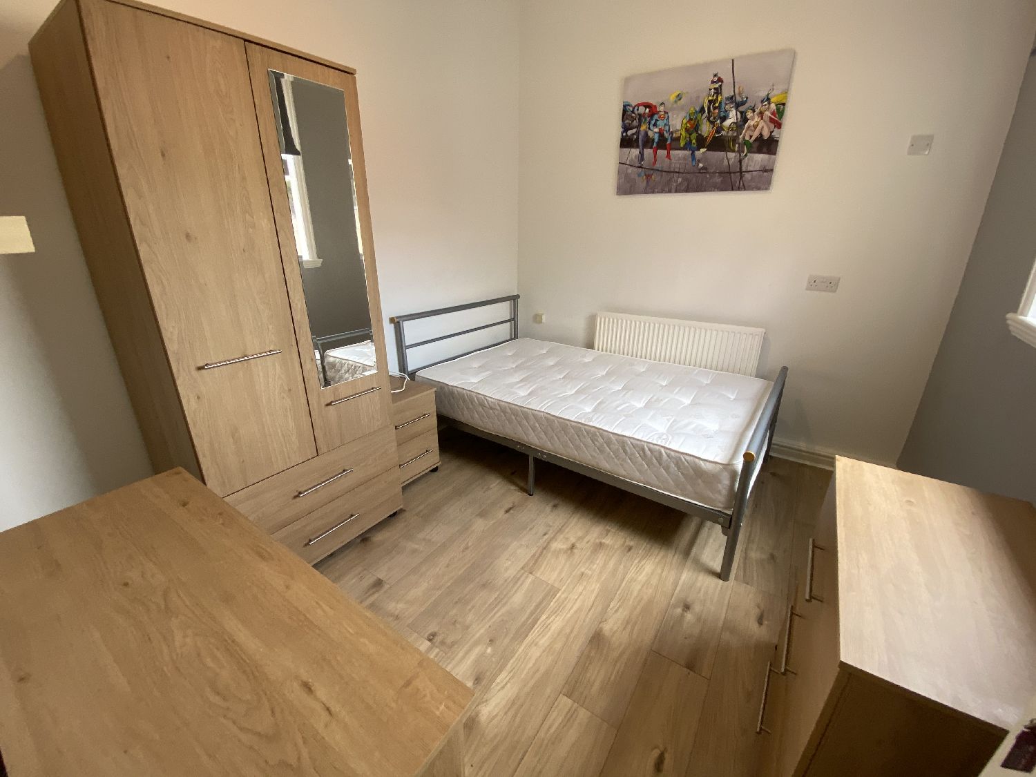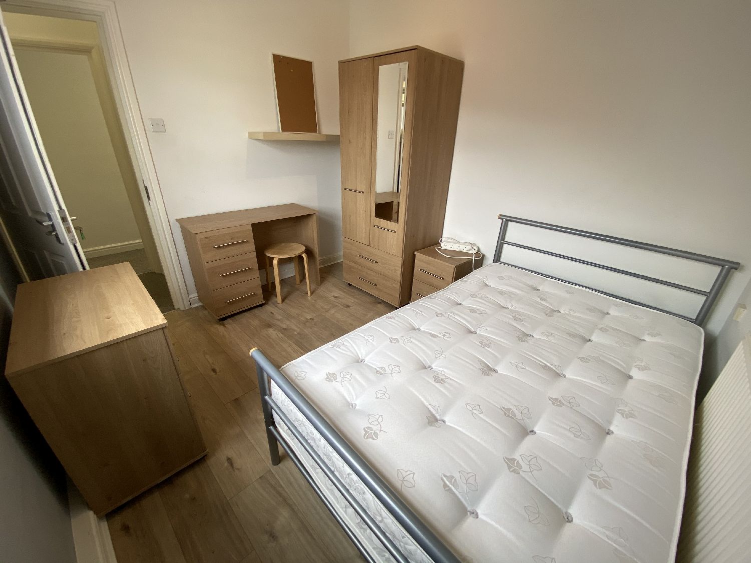 The house features three large double bedrooms, each fully furnished with a bed, wardrobe, chest of drawers, desk, chair, and even a sofa—perfect for relaxing in your own space.