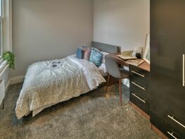 Each of the four bedrooms is fully furnished with a double bed, wardrobe, chest of drawers, desk and desk chair, offering plenty of storage and study space for every resident