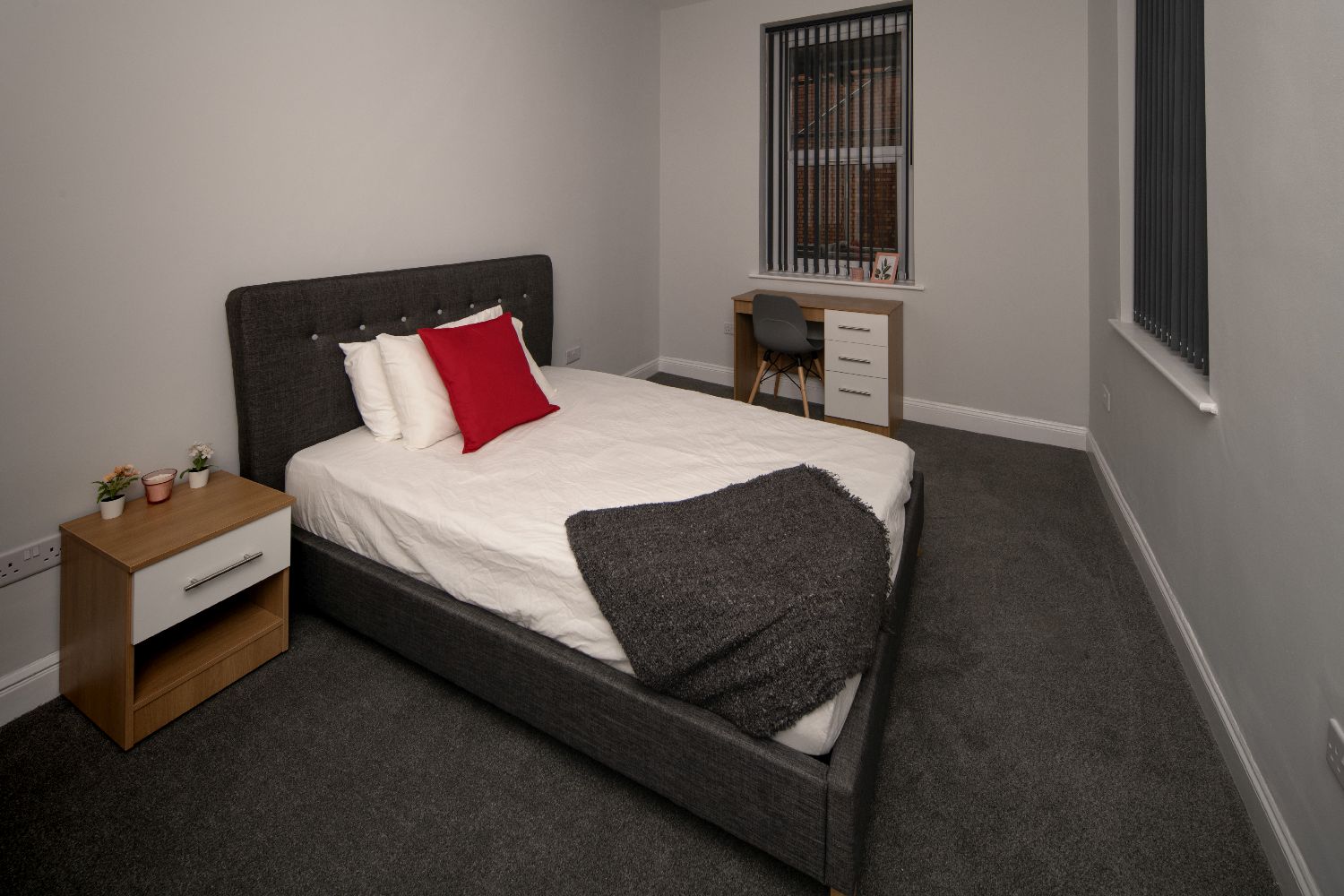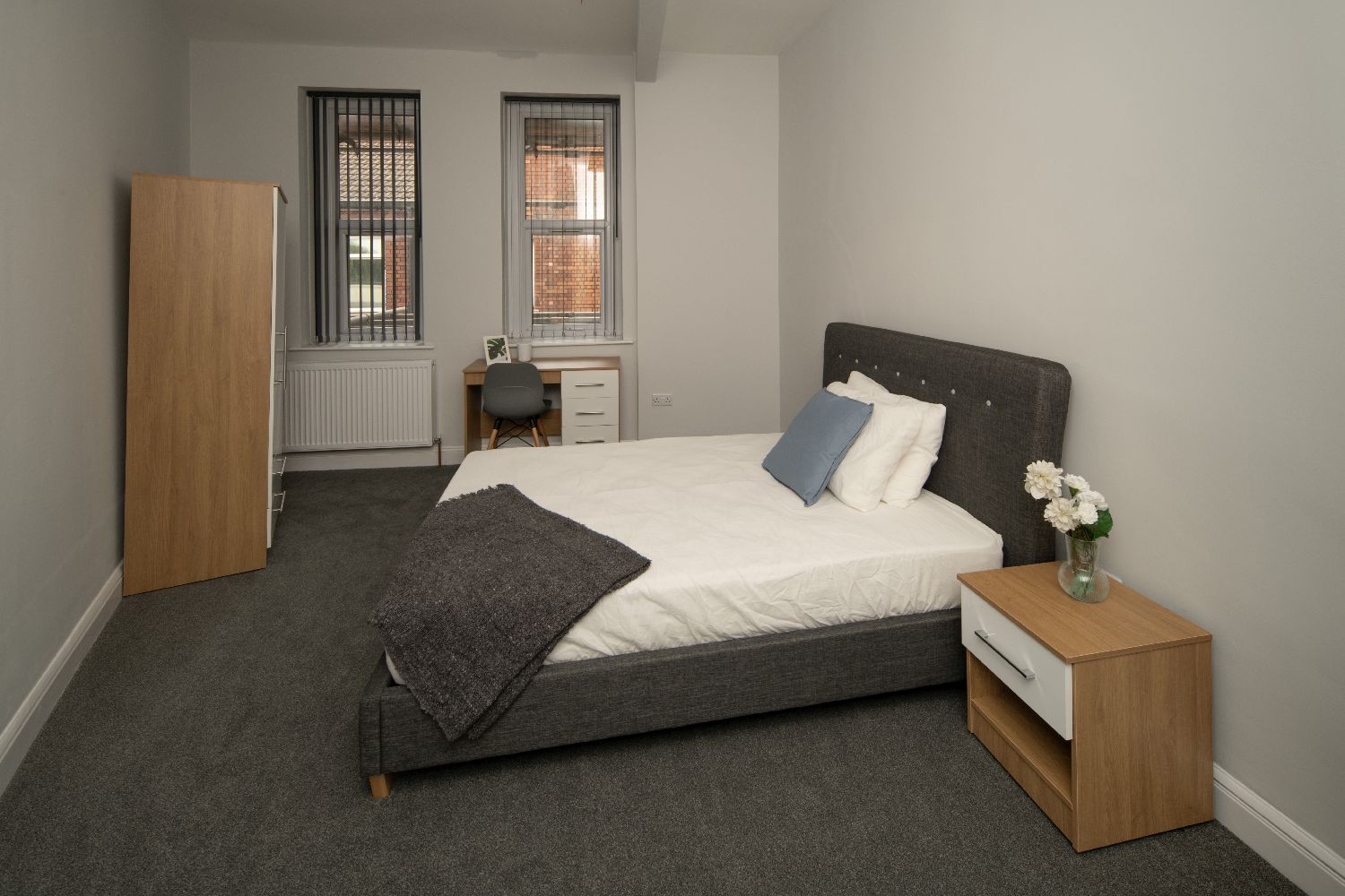 Both bedrooms are fully furnished with double beds, wardrobes, desks, and chairs, providing the perfect space for study and relaxation.