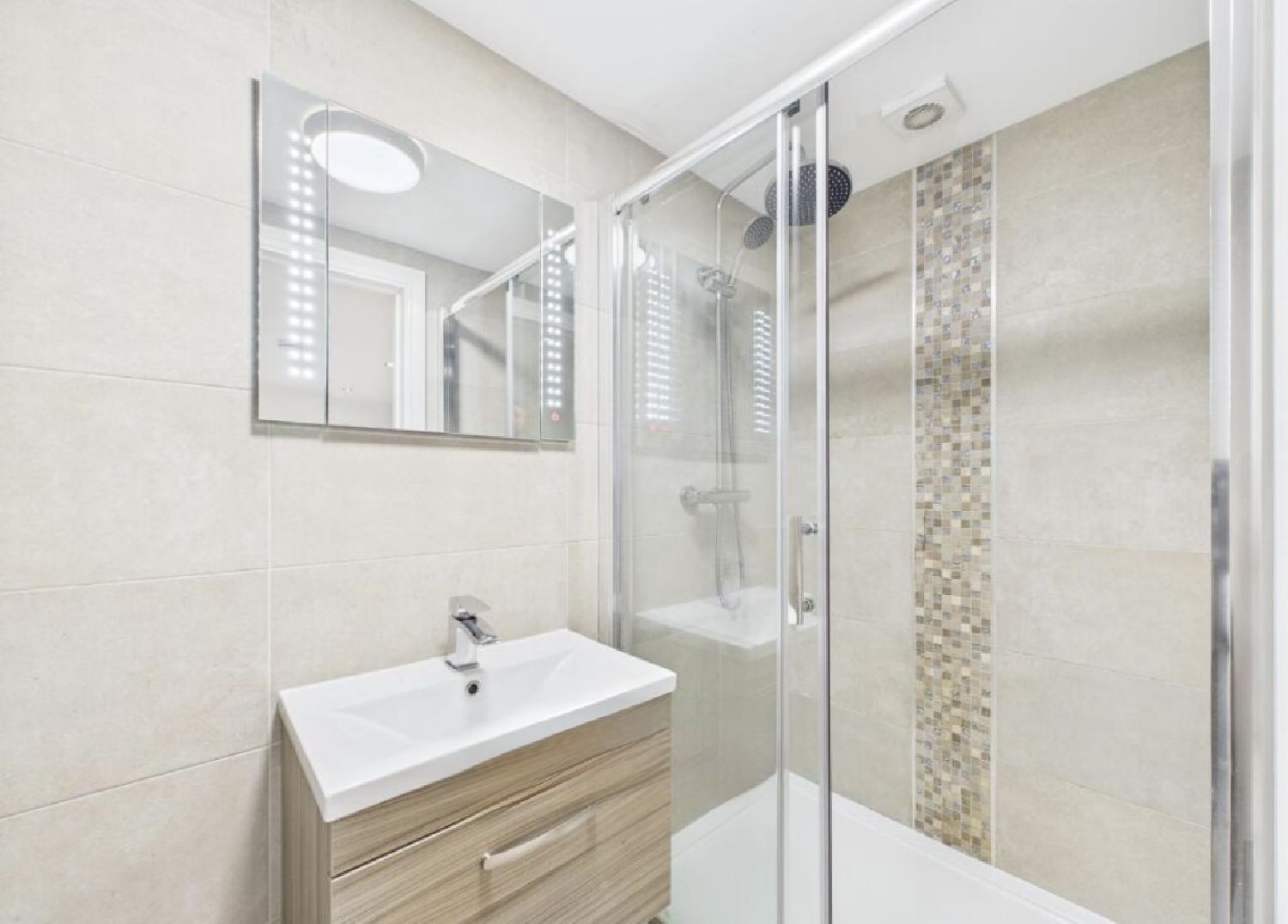 The bedroom is a good-sized double with an additional versatile space attached — perfect for creating a small study area, walk-in wardrobe, or extra storage to suit your needs. A clean, modern bathroom completes the layout.