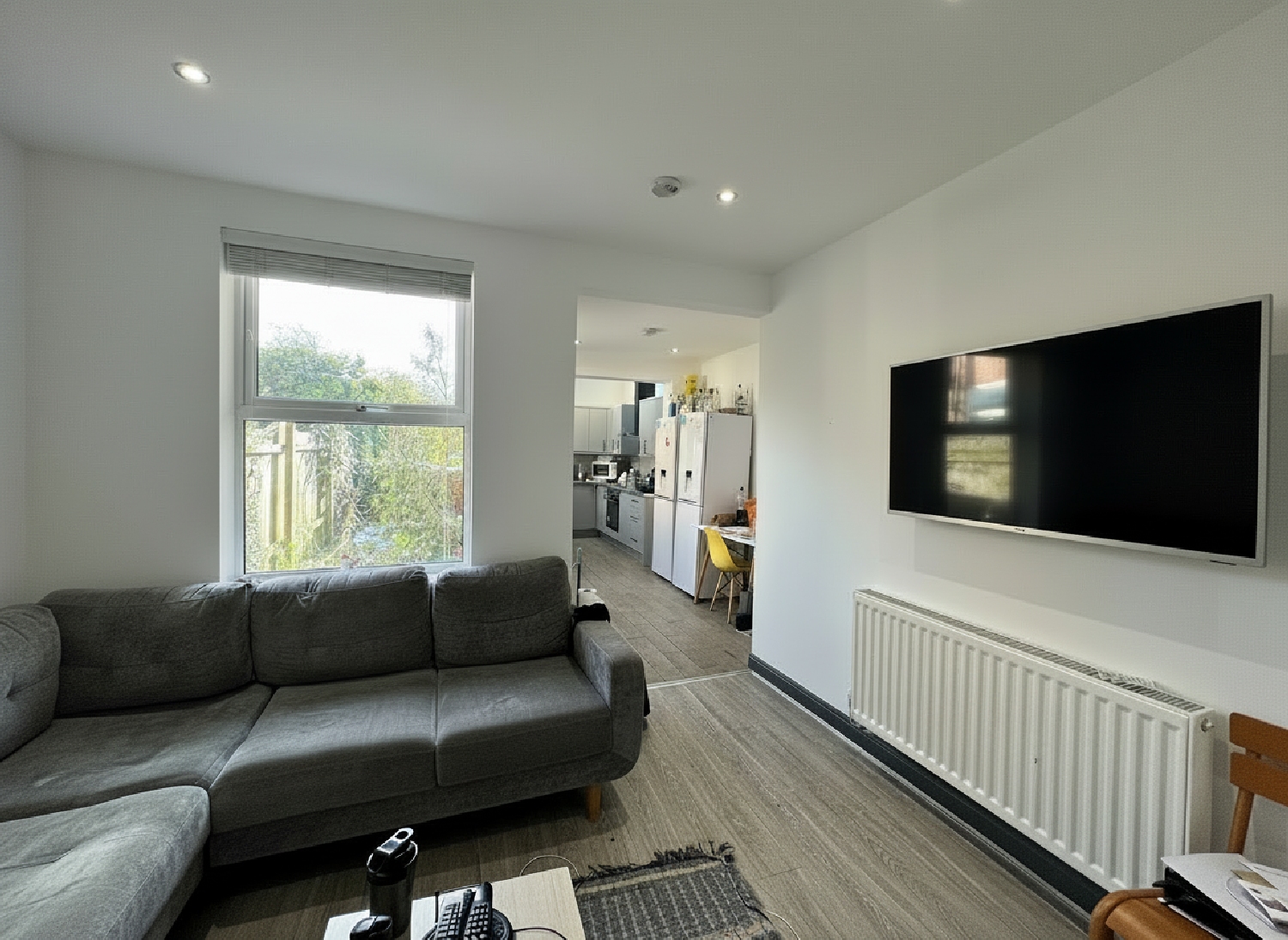 Modern property with 6 double rooms on a popular road in the heart of Lenton. The property is fully furnished with double glazing and central heating throughout, the property has a large open plan lounge/kitchen with a large wallmounted TV. Very spacious property which is perfect for larger groups, at a great price.