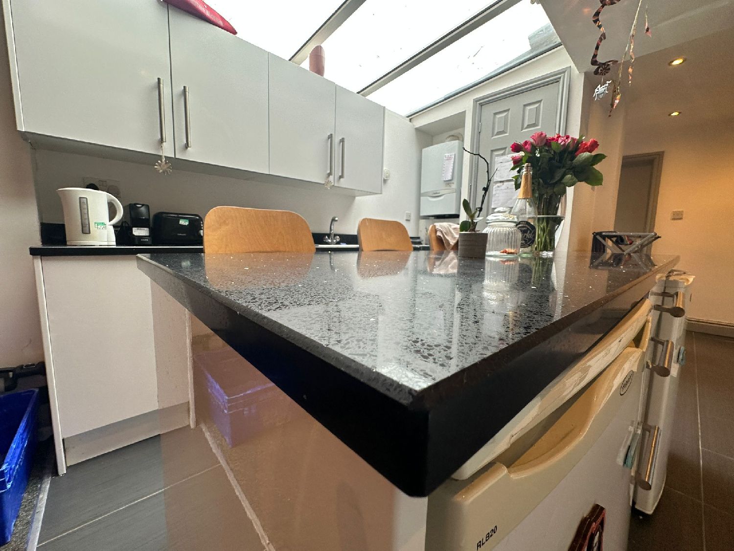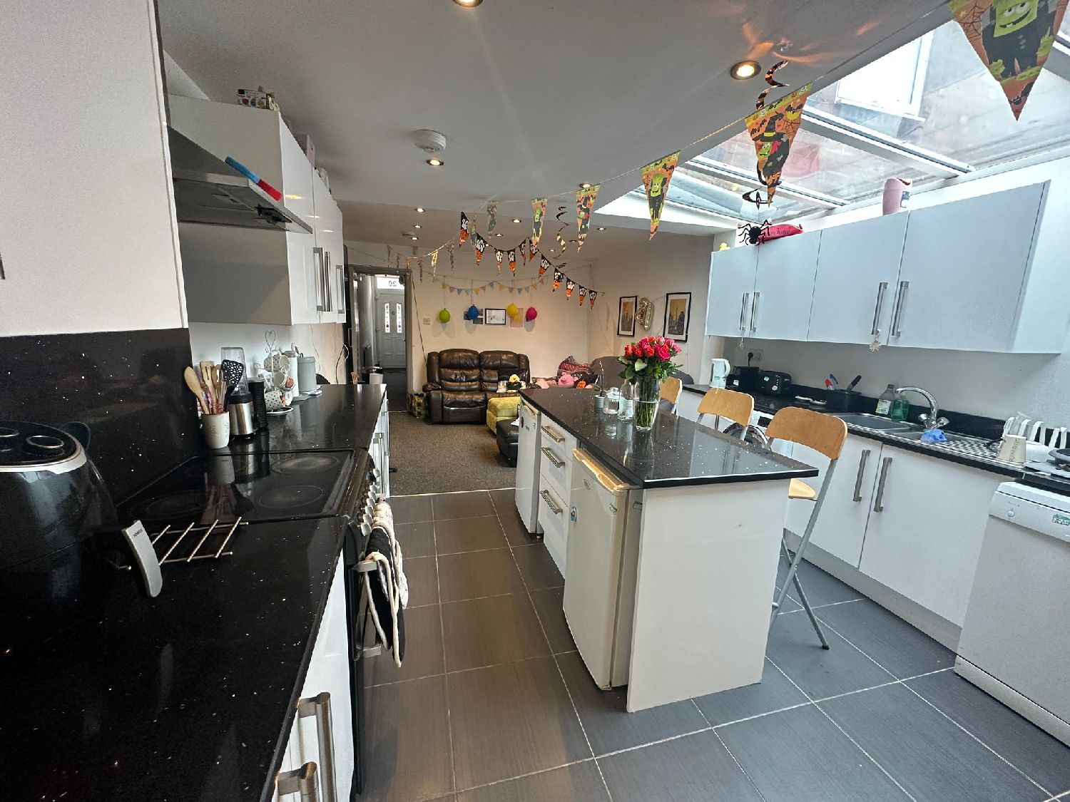 Recently refurbished property. The lounge includes a wall mounted flat screen TV and comfy leather sofas. The kitchen includes a dishwasher, washing machine, tumble drier, electric oven and plenty of fridge-freezer space. Large back garden with gazebo and BBQ, great for social events. The property is fully maintained by Fara and Elliot Gohari.