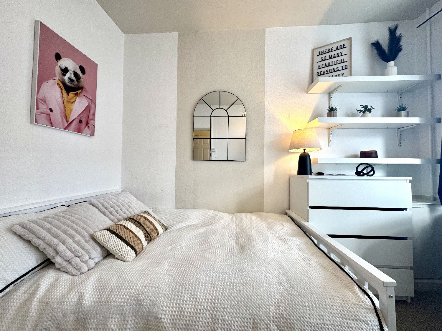 Downstairs, you will find an attractive and modern open-plan kitchen and living area, fitted with a washer dryer and plenty of fridge and cupboard space. The back door leads to a small patio area outside.