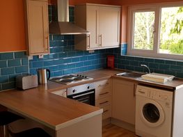 This property boasts 2 large bedrooms with double bed, desk, chair, wardrobe and additional storage. There is also a spacious bathroom, and a open-plan communal area with extensive counter space and storage, washing machine, dining table and chairs, and comfortable leather sofa.
